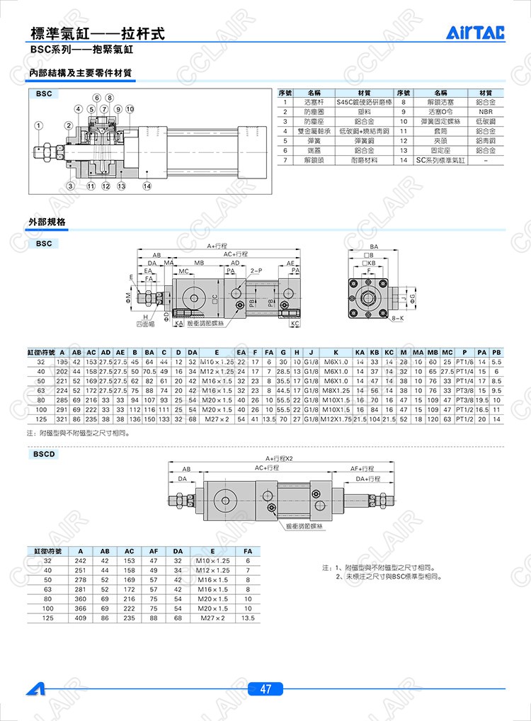 BSC32*25,BSC32*25-S,BSC32*50,BSCD32*25,BSCD32*25-S,BSCD32*50,AIRTAC亞德客標準氣缸-拉桿式