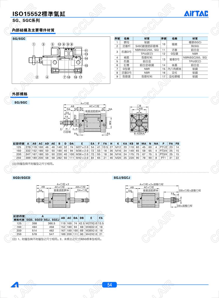 AIRTAC亞德客 標準氣缸,SG125*700-S,SG125*800,SG125*800-S,SG125*900,SG125*900-S,SG125*1000,SG125*1000-S,SGD160*1000 SGD160*1000-S,SGJ125*25,SGJ125*25-S,SGJ250*900,SGJ250*900-S,SGJ250*1000 SGJ250*1000-S