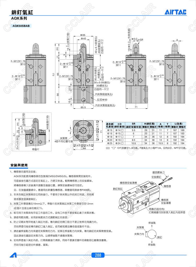亞德客AIRTAC,AQK50SAAA,AQK50SAAB,AQK50SAAC,AQK50SBAA,AQK50SBAB,AQK50SBAC,銷釘氣缸