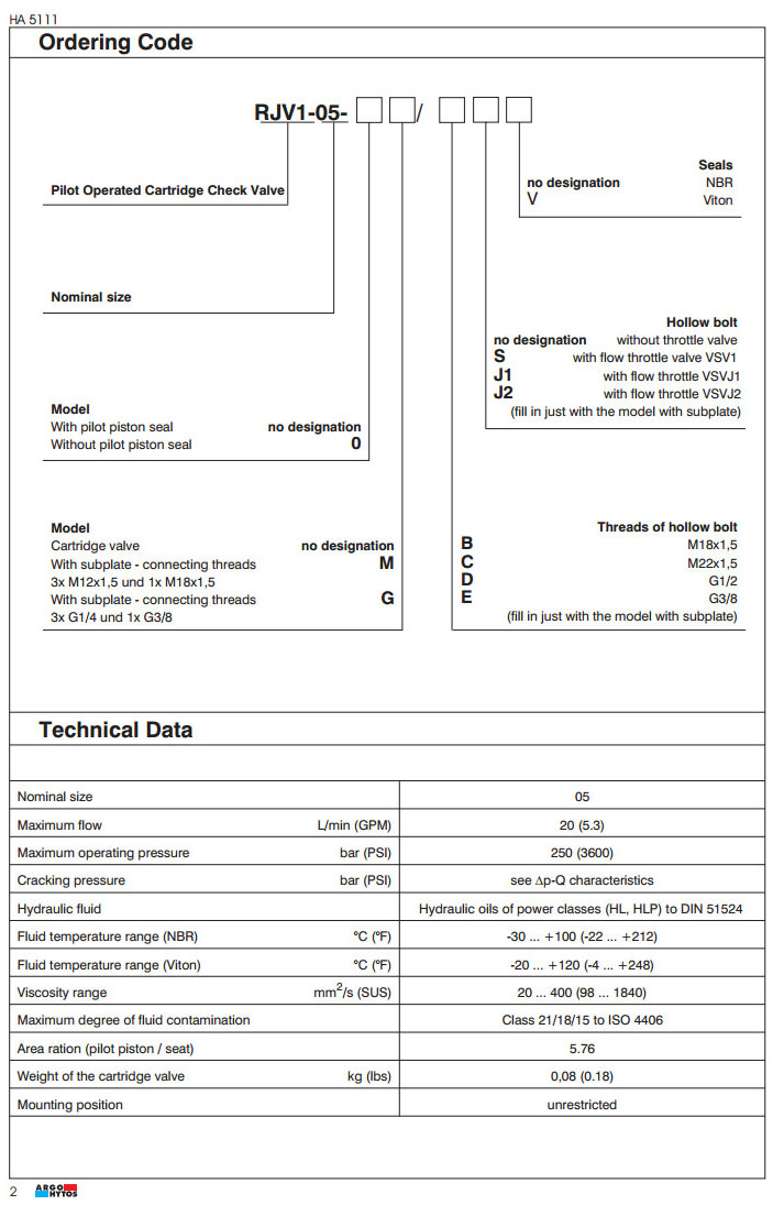 RJV1-05,ARGO液控單向閥