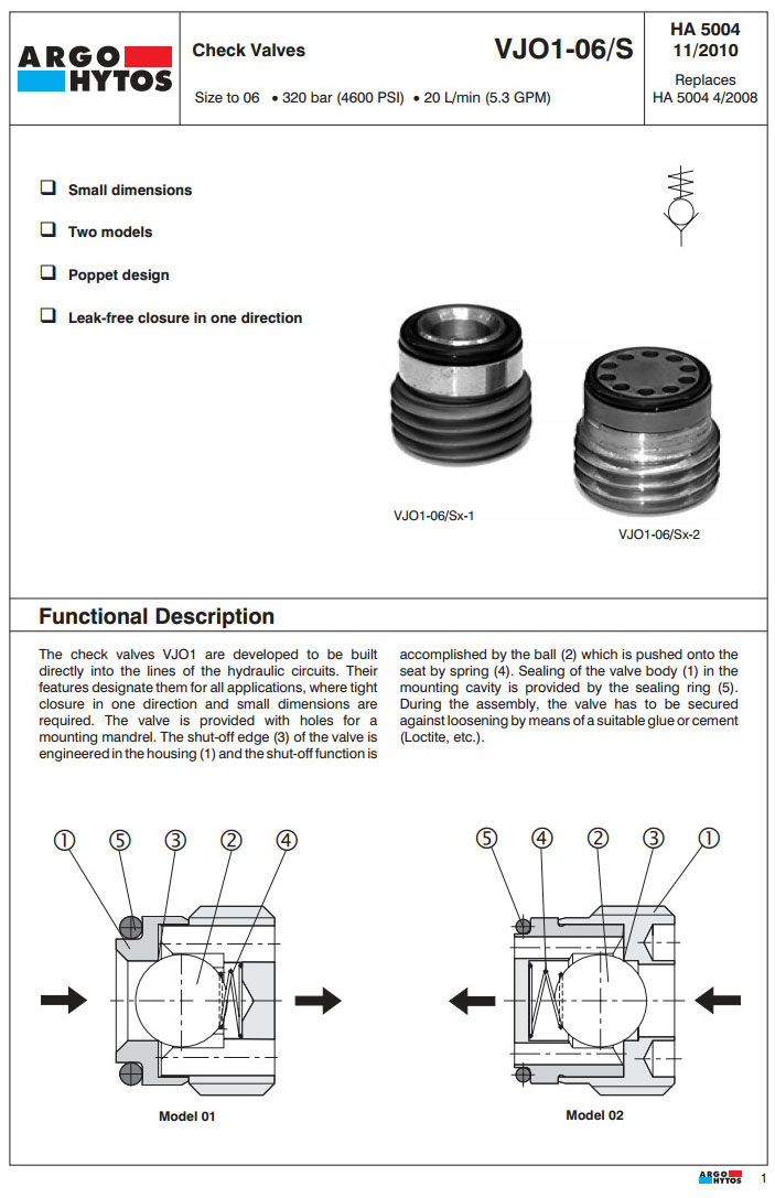 首頁 > 產(chǎn)品&解決方案 > VJO1-06/SG-1,VJO1-06/SS-1,VJO1-06/SG-2,VJO1-06/SS-2,ARGO止回閥