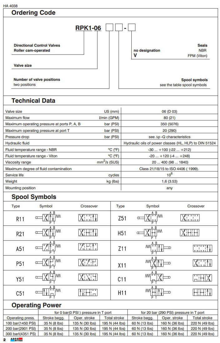RPK1-06,ARGO手動(dòng)方向控制閥