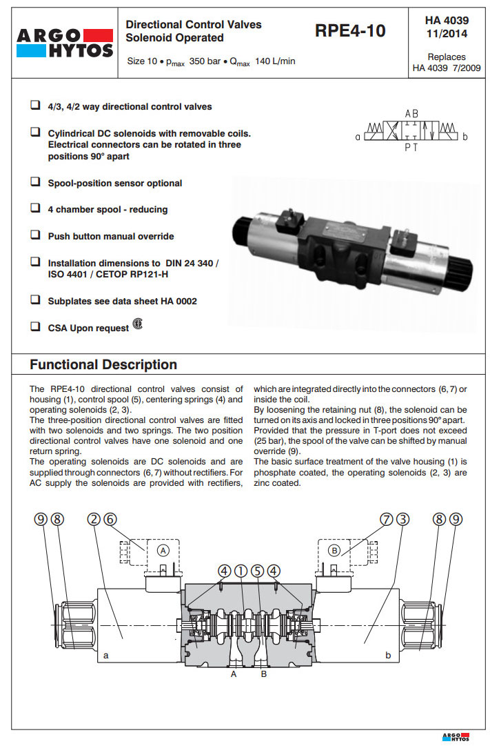 首頁 > 產(chǎn)品&解決方案 > RPE4-102,RPE4-103,RPE4-102R21,RPE4-103C11/23050E5,RPE4-102Y51/01200E1,ARGO電磁方向控制閥