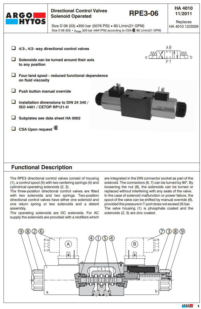 首頁 > 產(chǎn)品&解決方案 > RPE3-062,RPE3-063,RPE3-062Z11/01200E1,RPE3-063C11/23050E5,RPE3-062C51/01200E1,ARGO電磁方向控制閥