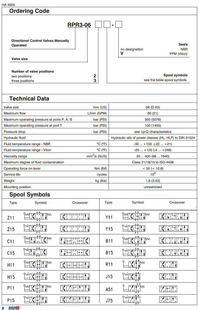 RPR3-062,RPR3-063,RPR3-062Z11,RPR3-063J75,RPR3-062J15,RPR3-063Y11,RPR3-062J75,ARGO手動(dòng)方向控制閥