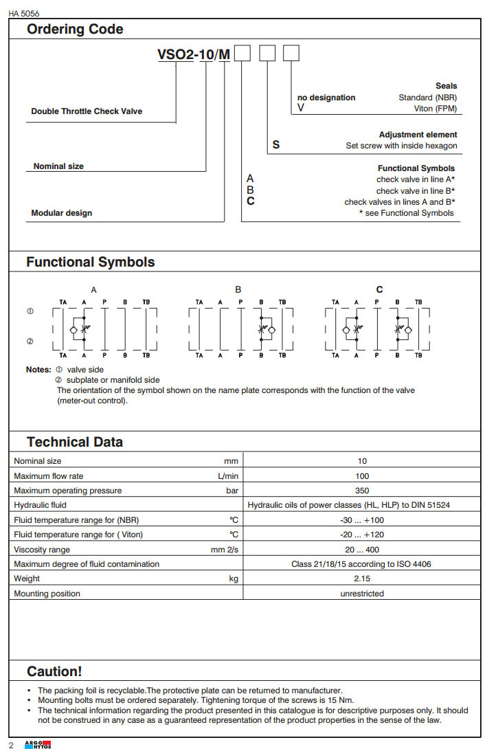VSO2-10/MA,VSO2-10/MB,VSO2-10/MC,ARGO雙單向節(jié)流閥