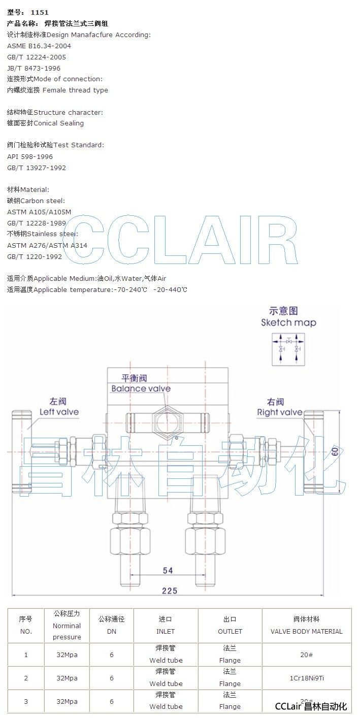 1151,焊接管法蘭式三閥組
