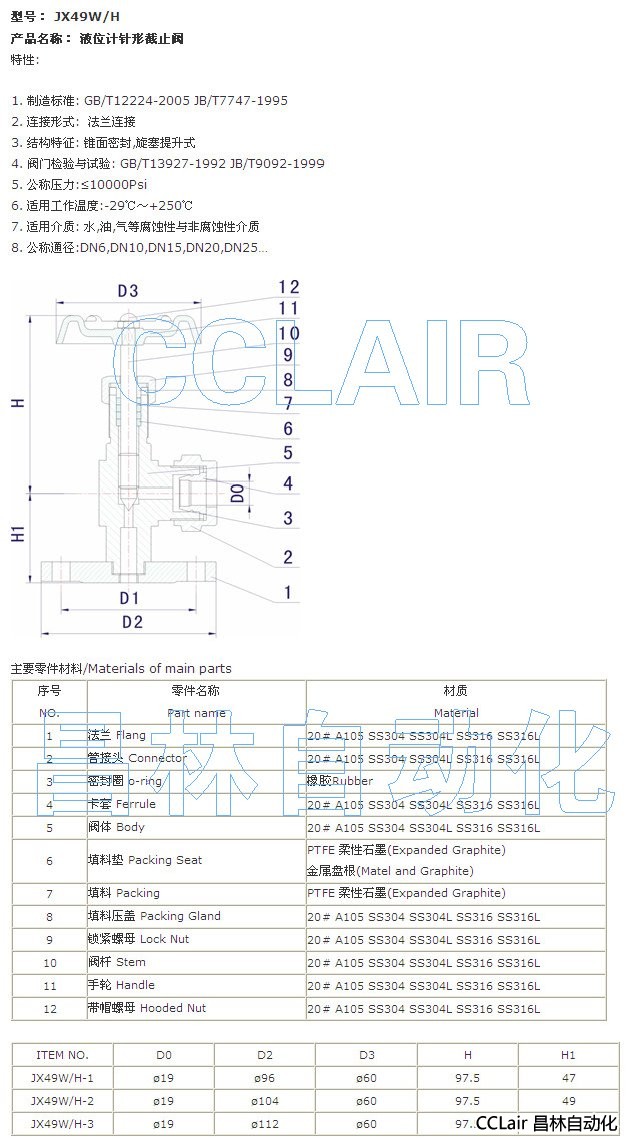 JX49W-1,JX49W-2,JX49W-3,JX49H-1,JX49H-2,JX49H-3,液位計針形截止閥