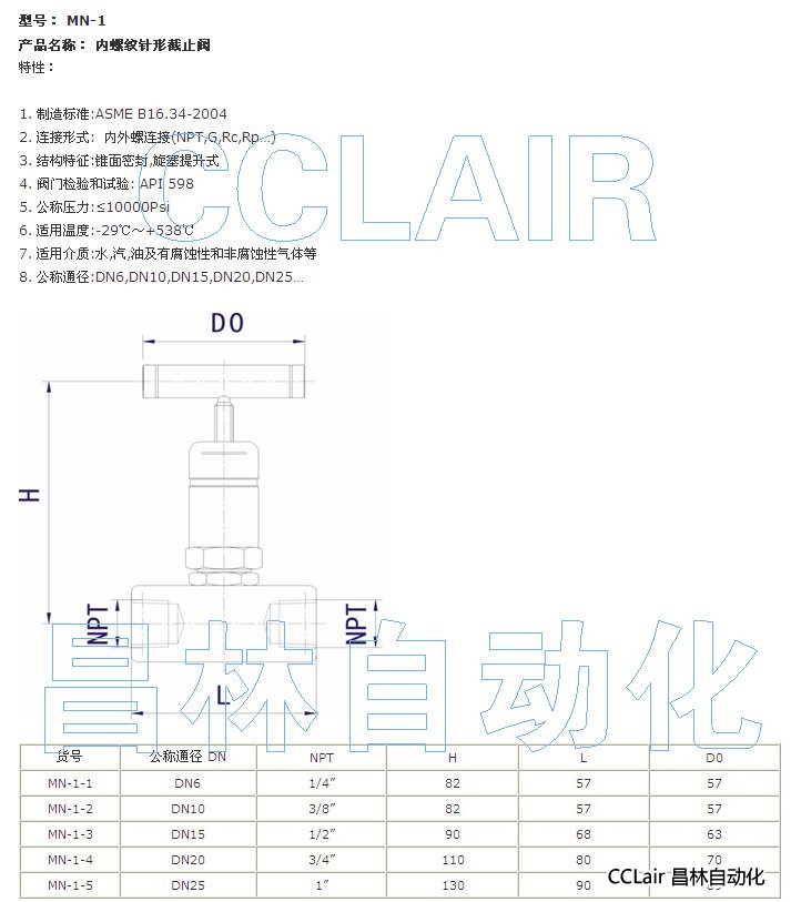 MN-1-1,MN-1-2,MN-1-3,MN-1-4,MN-1-5, 內(nèi)螺紋針形截止閥