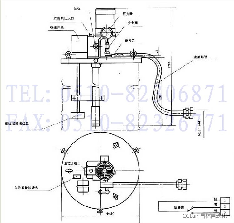 該電動加油泵適用于干油集中潤滑系統(tǒng)中,向電動潤滑泵的貯油器內(nèi)充填潤滑劑,該泵為內(nèi)藏式柱塞容積泵,采用減速電機直接傳動,帶動偏心輪往復(fù)運動,實現(xiàn)吸壓油功能。該泵運轉(zhuǎn)平穩(wěn),輸出壓力高,設(shè)有低油位報警裝置,能及時地向油筒內(nèi)充填潤滑脂。