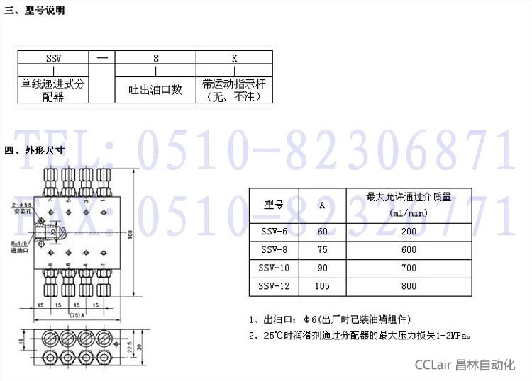 SSV-6,SSV-8,SSV-10,SSV-12,SSV-16, 單線遞進式分配器