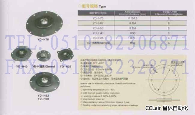 YD-H76, YD-H62, YD-H50, YD-H40, YD-H25, 脈沖閥膜片,