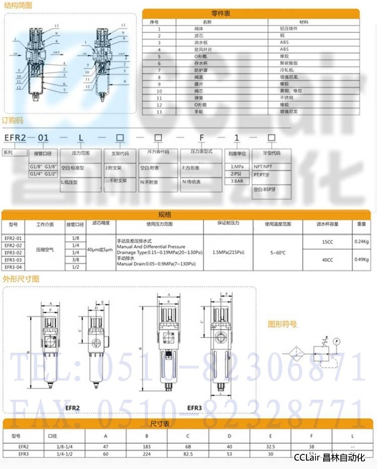 詳細信息 EFR2-01,EFR2-02,EFR3-02,EFR3-03,EFR3-04,過濾減壓閥