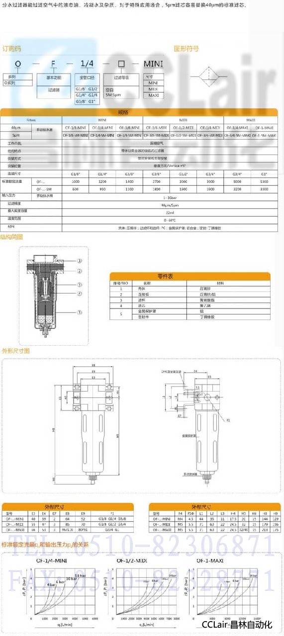 詳細(xì)信息 OF-1/8-MINI,OF-1/4-MINI,OF-3/8-MINI,OF-3/8-MIDI,OF-1/2-MIDI,空氣過濾器