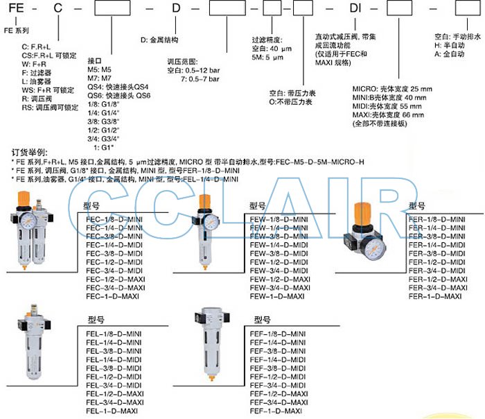 FER-M5-D,FER-M7-D,FER-QS4-D,FER-QS6-D,FER-1/8-D,FER-1/4-D,FER-3/8-D,氣源處理件