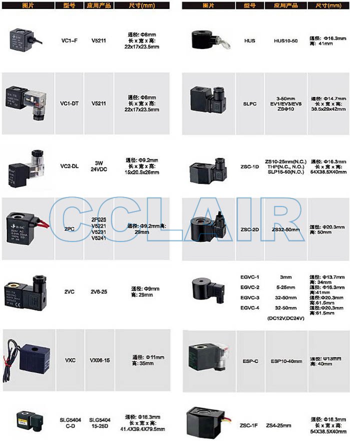 VC1-F,VC1-DT,VC1-DL,ZSC-1D,ZSC-2D,EGVC-1,EGVC-2,EGVC-3,EGVC-4,ESP-C,ZSC-1F,線圈