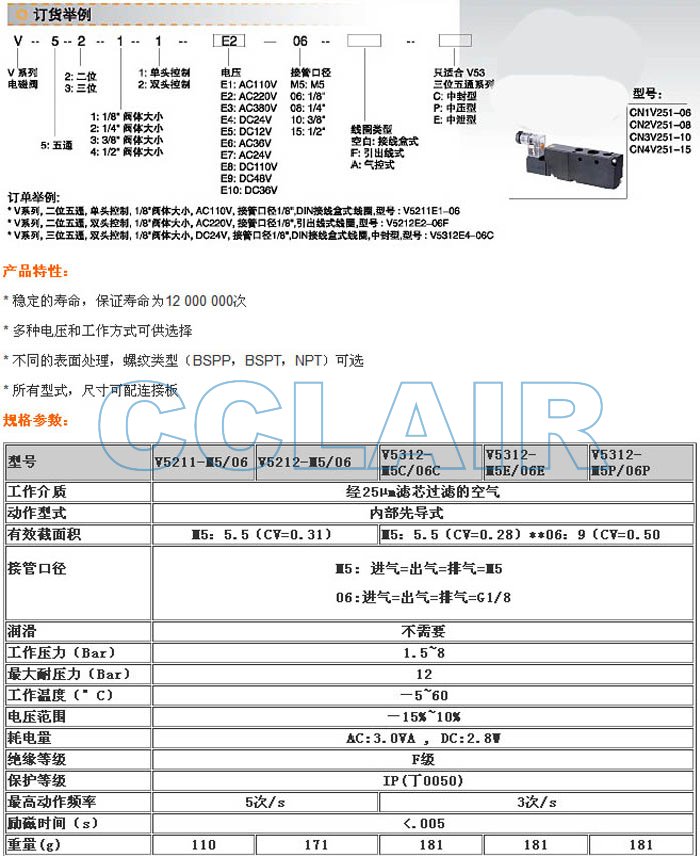 V5211E1-M5,V5312E1-M5,V5221E2-M5,V5321E3-M5,V5231E4-M5,V5332E4-M5,電磁閥