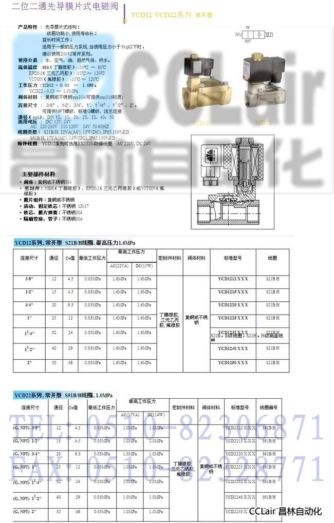 YCD1140,YCD1150,YCD2112,YCD2115, 二位二通先導(dǎo)膜片式電磁閥 ,價(jià)格