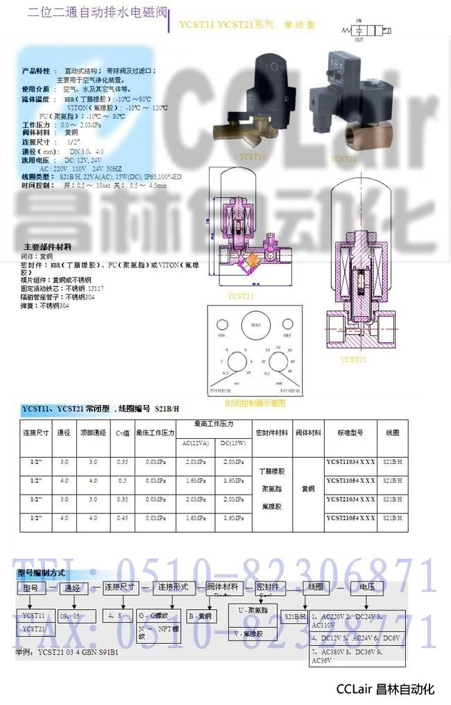 YCST11034 ,YCST11038 ,YCST21034 ,YCST21038 ,二位二通自動排水電磁閥 ,