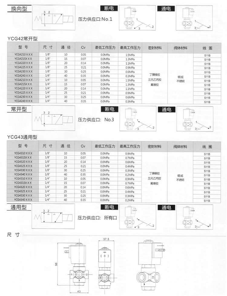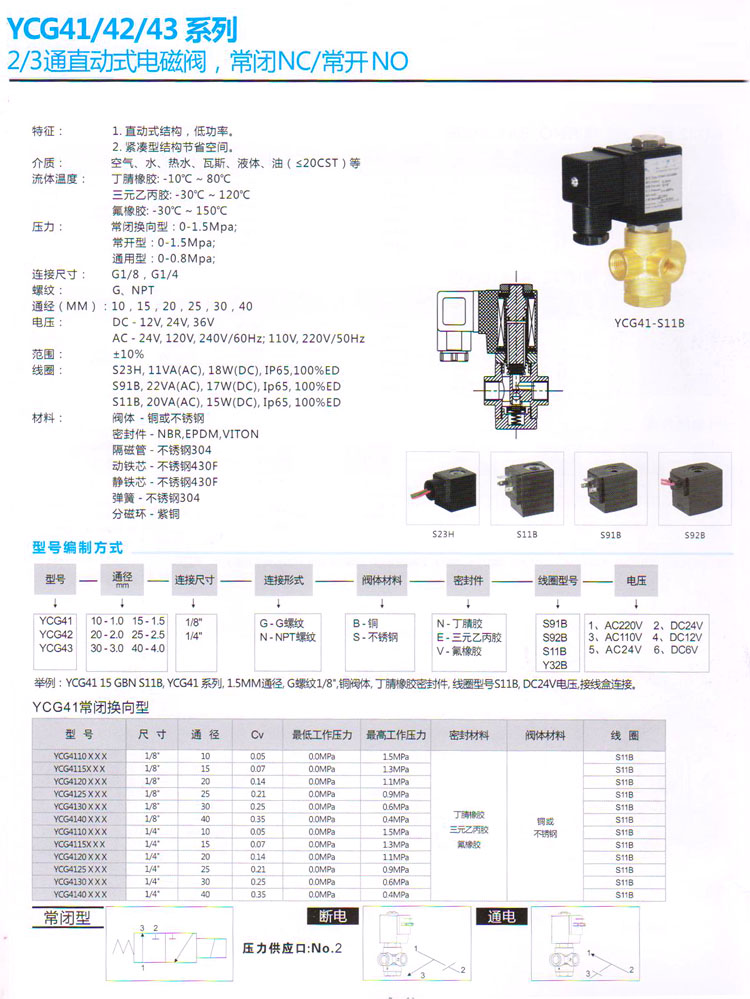 YCG41,YCG42,YCG43,YCG4110,YCG4115,YCG4210,YCG4215,YCG4310,YCG4315,直動式電磁閥