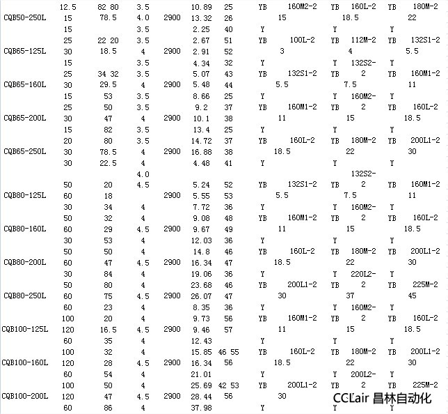 CQB65-250L,CQB80-125L,CQB80-160L,CQB80-200L,CQB80-250L,