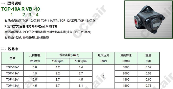 TOP-12ARVB-20,TOP-13ARVB-20,擺線齒輪泵