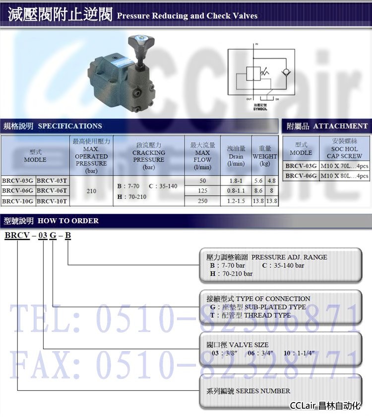 詳細信息 BRCV-03G-B,BRCV-03G-C,BRCV-03G-H,BRCV-03T-B,BRCV-03T-C,減壓閥附止逆閥