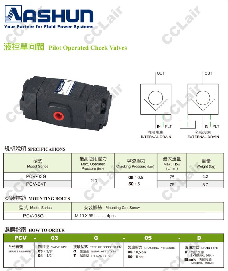 PCV-03G-05-D,PCV-03G-50-D,PCV-04T-05-D,PCV-04T-50-D,ASHUN油順液控?fù)Q向閥