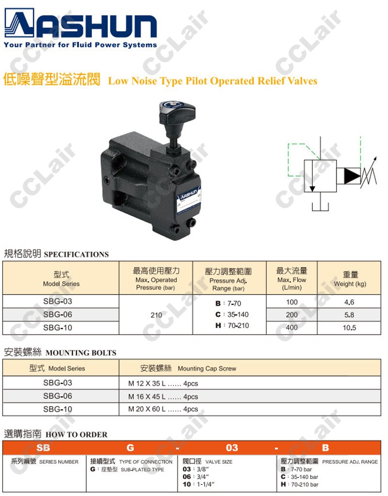詳細信息 SBG-03,SBG-06,SBG-10,SBG-03-C,SBG-06-B,SBG-10-H,ASHUN油順低噪音溢流閥