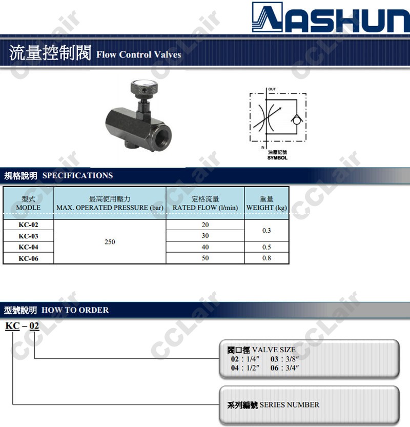 KC-02,KC-03,KC-04,KC-06,ASHUN油順流量控制閥
