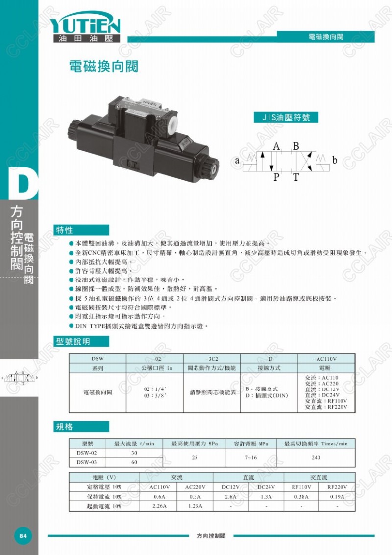 YUTIEN油田電磁換向閥DSW-02-3C2-B,DSW-03-3C2-B,DSW-03-3C2-D,DSW-02-3C3-B,DSW-02-3C3-D