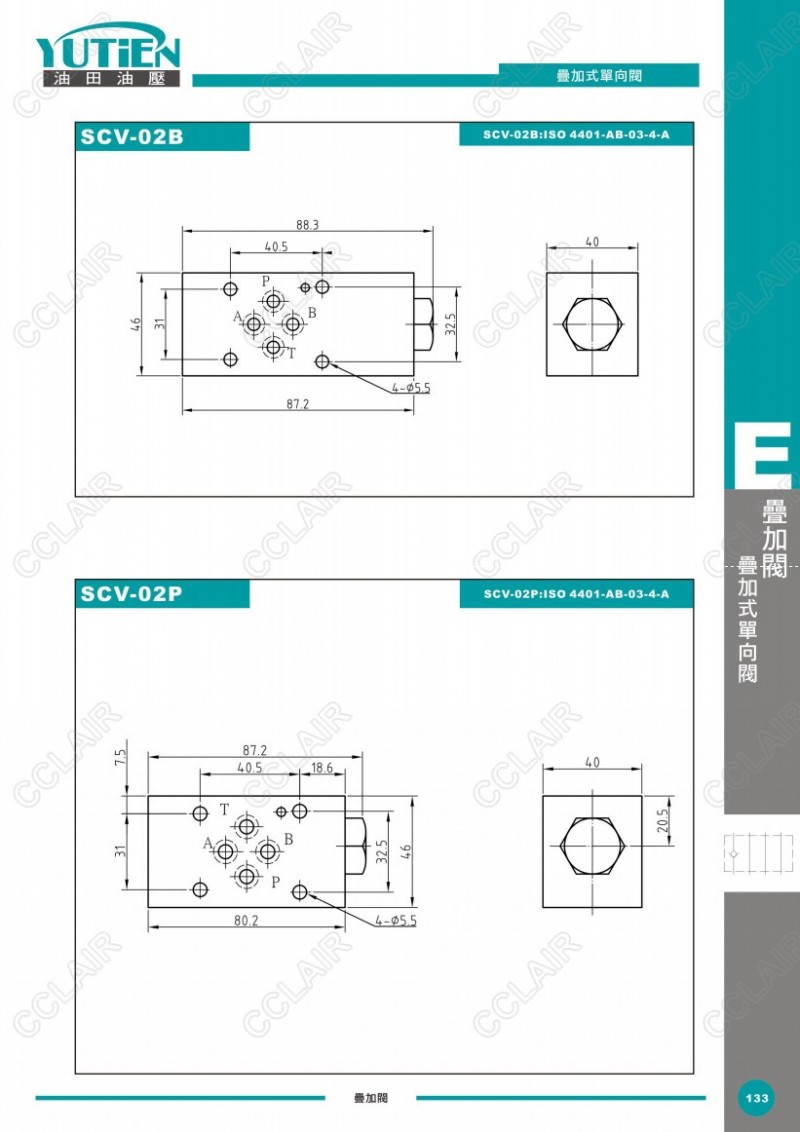 YUTIEN油田 疊加式單向閥SCV-02A,SCV-02B,SCV-02P,SCV-02T,SCV-03A,SCV-03B,SCV-03P,SCV-03T
