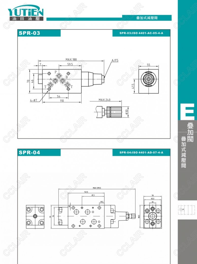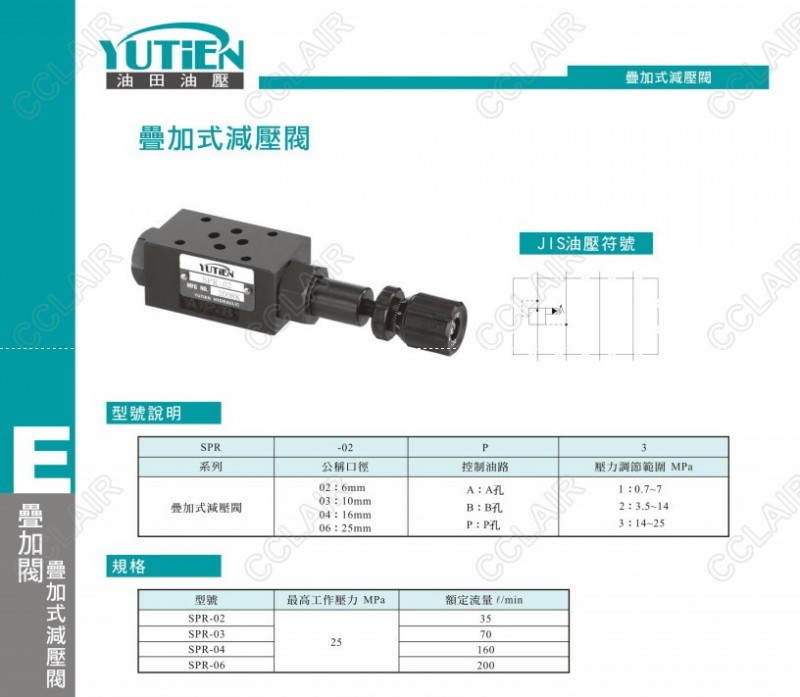 YUTIEN油田 疊加式減壓閥SPR-02A,SPR-02B,SPR-02P,SPR-03A,SPR-03B,SPR-03P,SPR-04A,SPR-04B,SPR-04P,SPR-06A,SPR-06B,SPR-06P