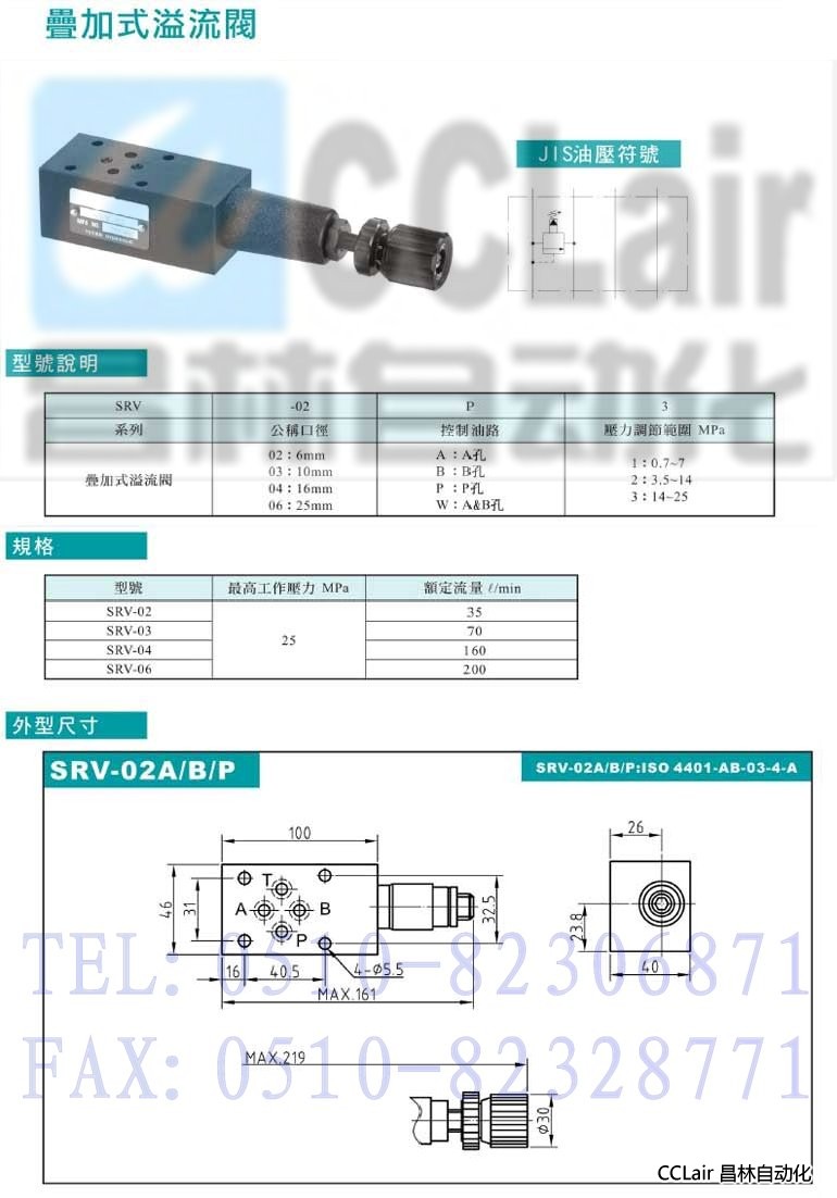 SRV-02P,SRV-02W,SRV-06A,SRV-06B,SRV-06P,SRV-06W,疊加式溢流閥