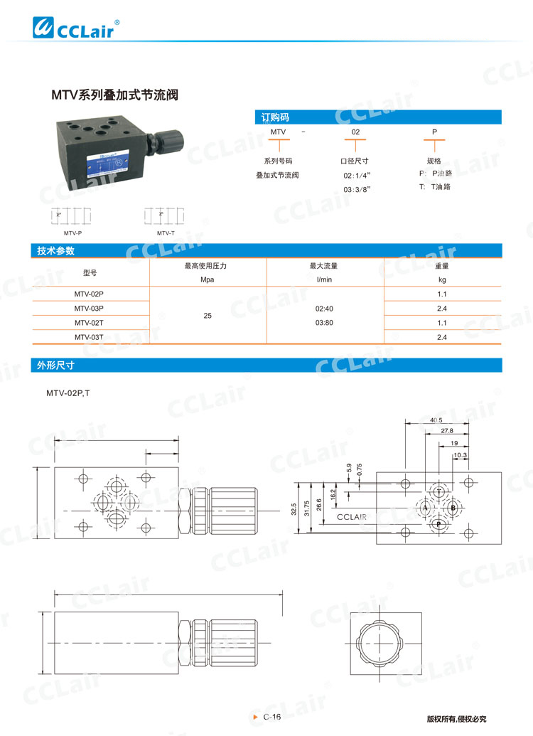 疊加式節(jié)流閥MTV-02P,MTV-02T,MTV-03P,MTV-03T,MTV-04P,MTV-04T,