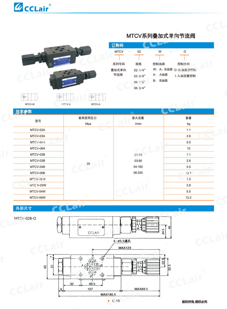 MTCV-02,MTCV-03,MTCV-04,MTCV-06,MTCV-02A-I,MTCV-03B-O,MTCV-06W,疊加式單向節(jié)流閥