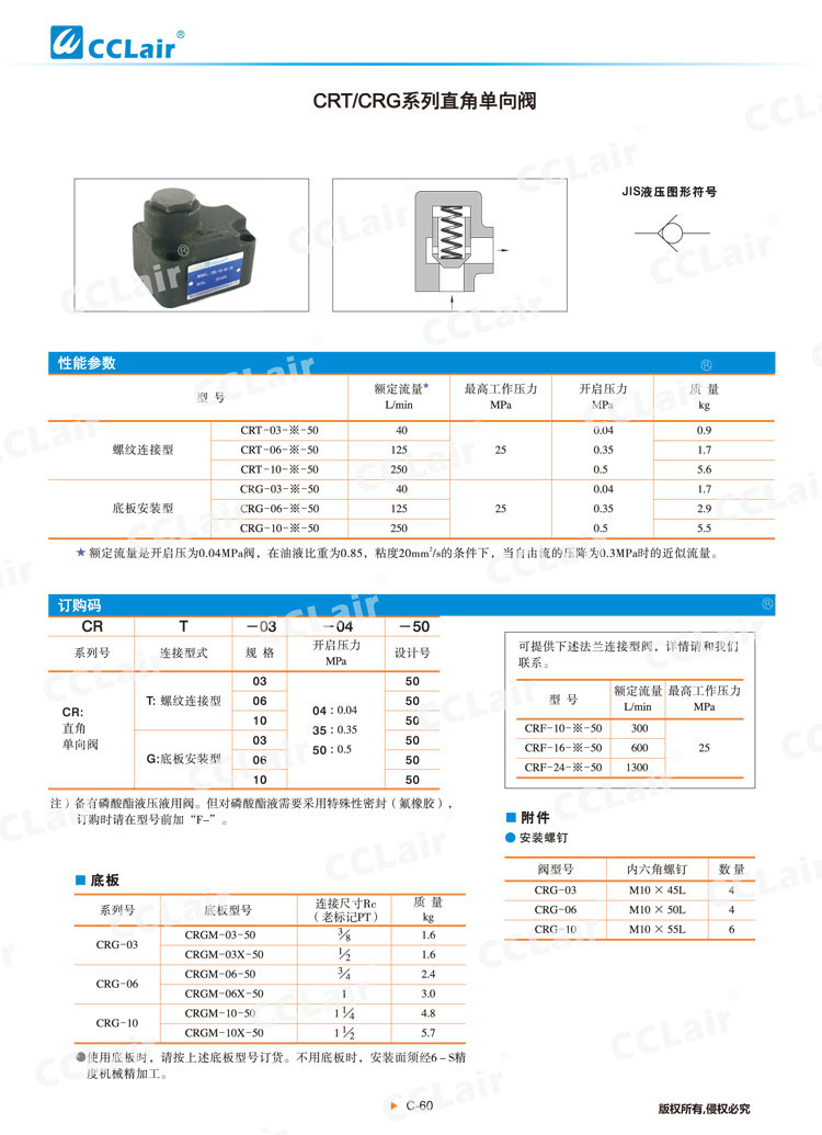 CRT-03,CRT-06,CRT-10,CRG-03,CRG-06,CRG-10,CRT-03-04-50,CRT-10-50-50,直角單向閥