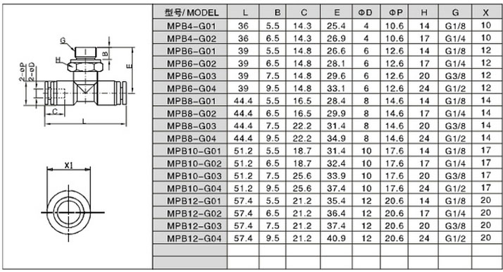 詳細(xì)信息 MPB4-G01,MPB6-G01,MPB8-G04,MPB10-G01,MPB12-G01,螺紋三通接頭