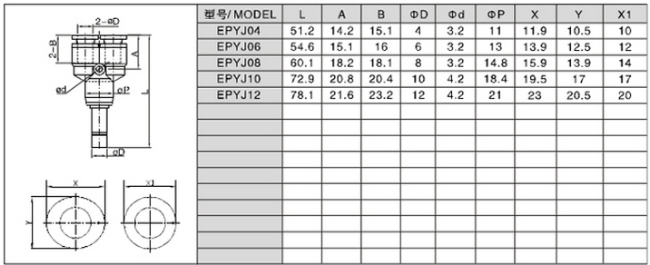 EPYJ04,EPYJ06,EPYJ08,EPYJ10,EPYJ12,插桿三通接頭
