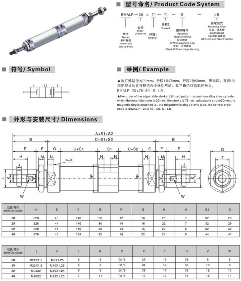 EMALP-20*75*50,EMALP-25*75*50,EMALP-32*75*50,EMALP-40*75*50,鋁合金迷你氣缸