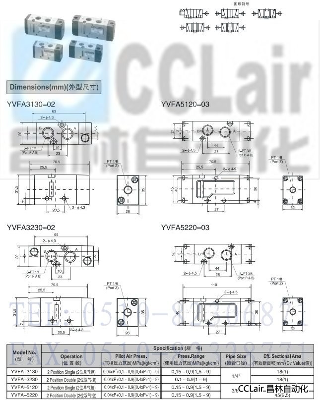 YVFA-3130,YVFA-3230,YVFA-5120,YVFA-5220,5通氣控閥