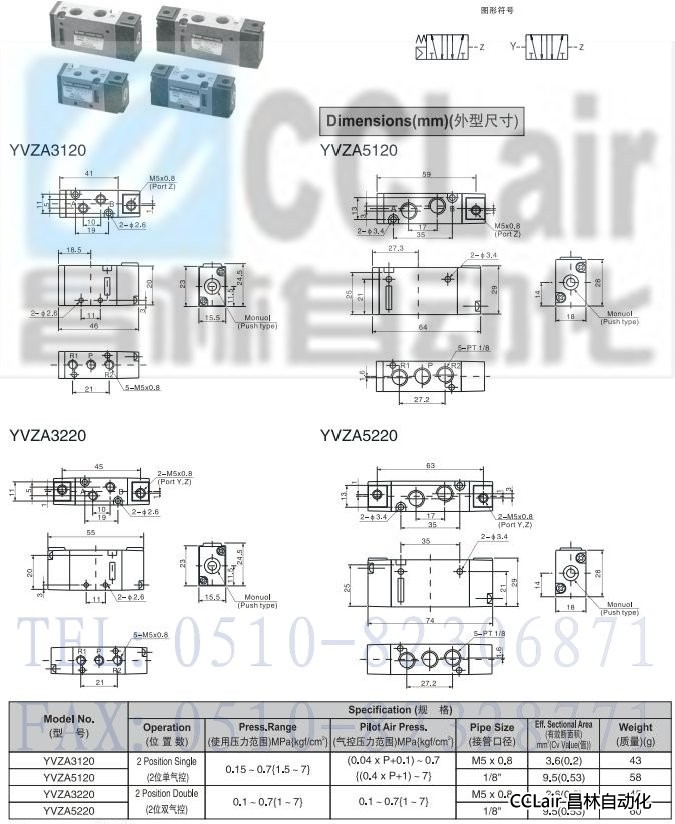 YVZA3120,YVZA5120,YVZA3220,YVZA5220,5通氣控閥