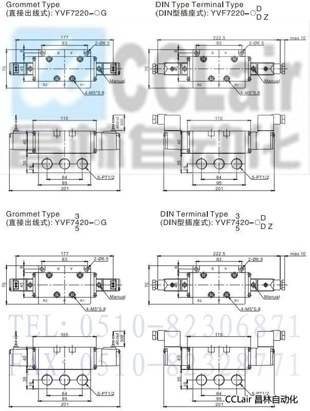 YVF7120,YVF7220,YVF7320,YVF7420,YVF7520,五通先導(dǎo)型電磁閥