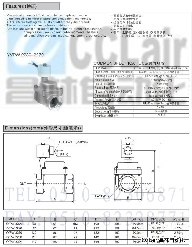 詳細(xì)信息 YVPW2230,YVPW2240,YVPW2250,YVPW2260,YVPW2270,先導(dǎo)型2通電磁閥