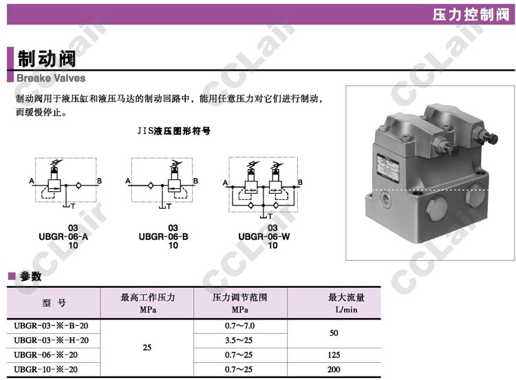詳細(xì)信息 UBGR-03,UBGR-06,UBGR-10,UBGR-03-A-B-20,UBGR-06-A-20,UBGR-10-A-20,制動(dòng)閥