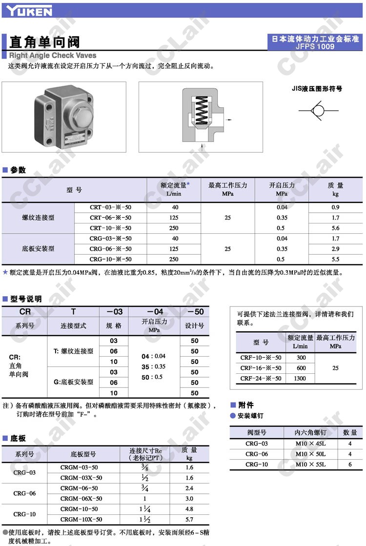 CRT-03,CRT-06,CRT-10,CRG-03,CRG-06,CRG-10,CRT-03-04-50,CRG-03-04-50,YUKEN,直角單向閥