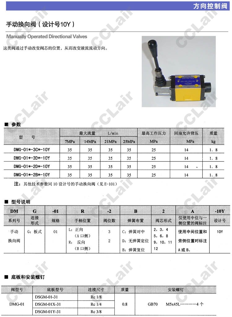 DMG-01L,DMG-01R,DMG-01L-3C2A-10Y,DMG-01R-3C2B-10Y,手動(dòng)換向閥