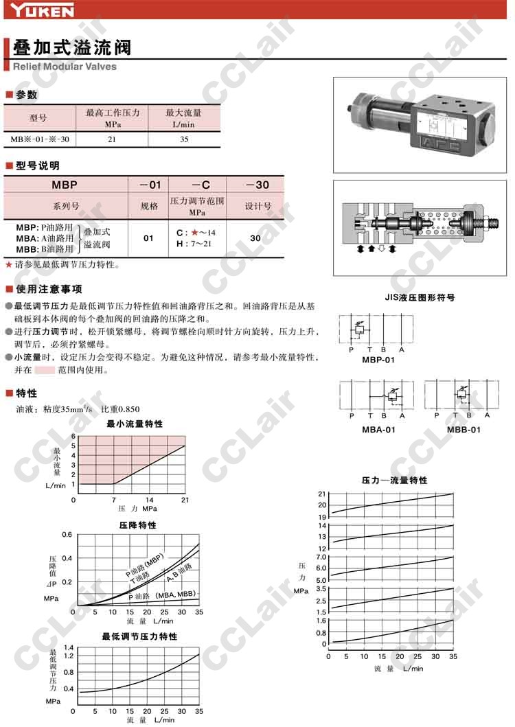 MBP-01-C-30,MBP-01-H-30,MBA-01-C-30,MBA-01-H-30,MBB-01-C-30,MBB-01-H-30,疊加式溢流閥,YUCIYUKEN榆次油研