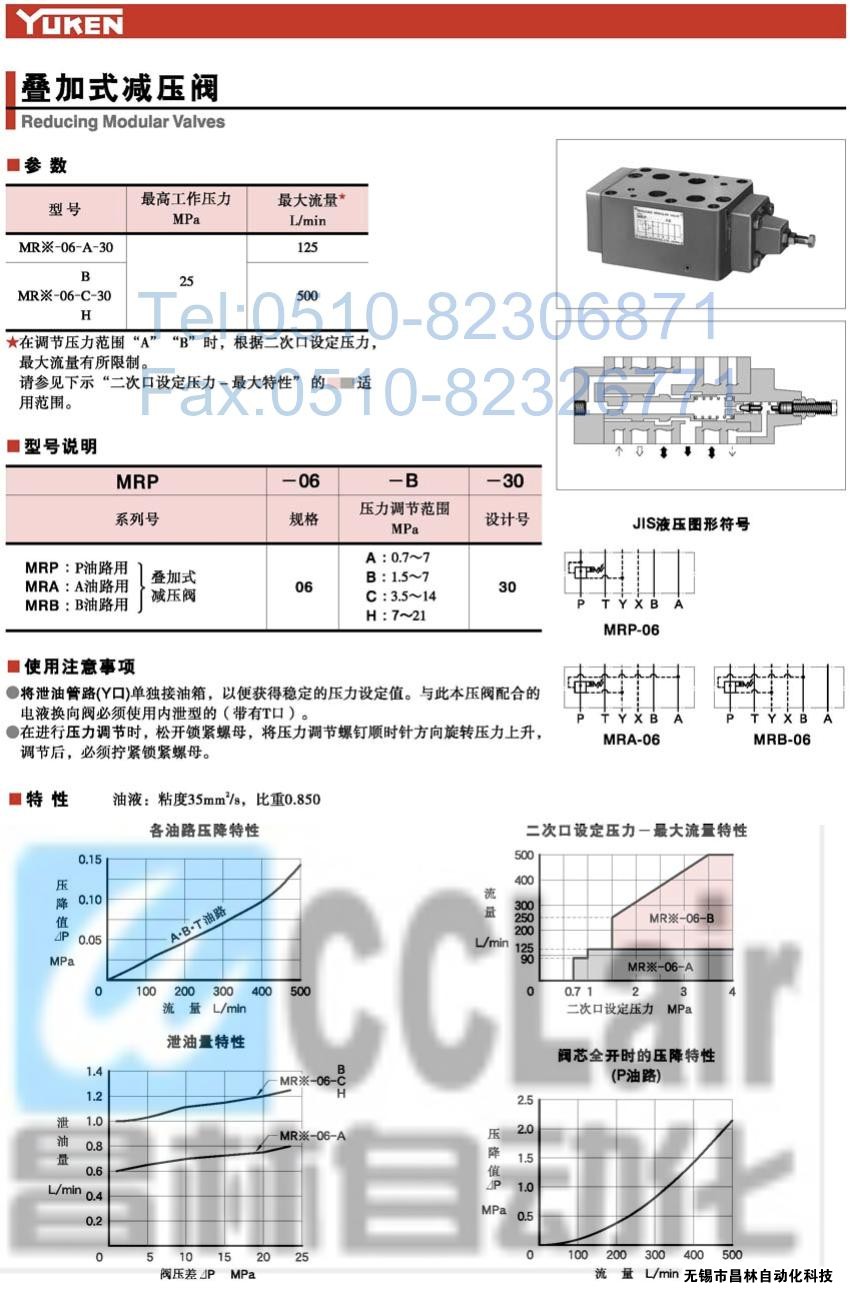 MRB-06-A-30,MRB-06-B-30,MRB-06-C-30,疊加式減壓閥,榆次油研疊加式減壓閥,YUKEN疊加式減壓閥