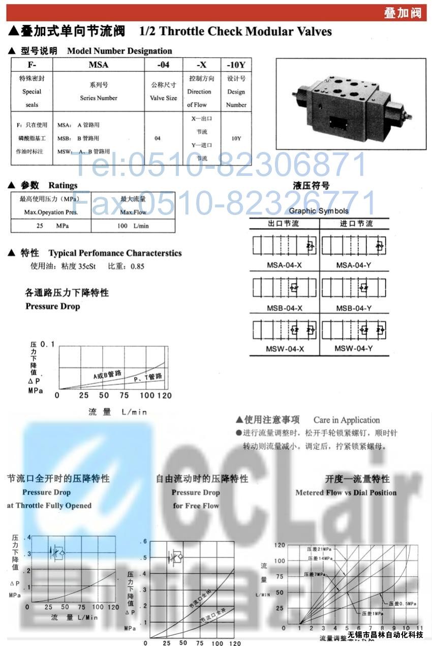 MSA-04-X-10Y,MSA-04-Y-10Y,MSB-04-X-10Y,疊加式單向節(jié)流閥,榆次油研疊加式單向節(jié)流閥,YUKEN疊加式單向節(jié)流閥